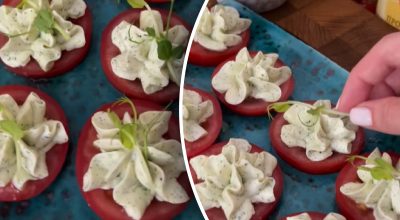 Väga maitsva tomati suupiste retsept. Link kopeeritud Kiire eelroog, millest saab lastaar / Kollaaž: My, foto: ekraanipildid videost Tomatid on täiuslik